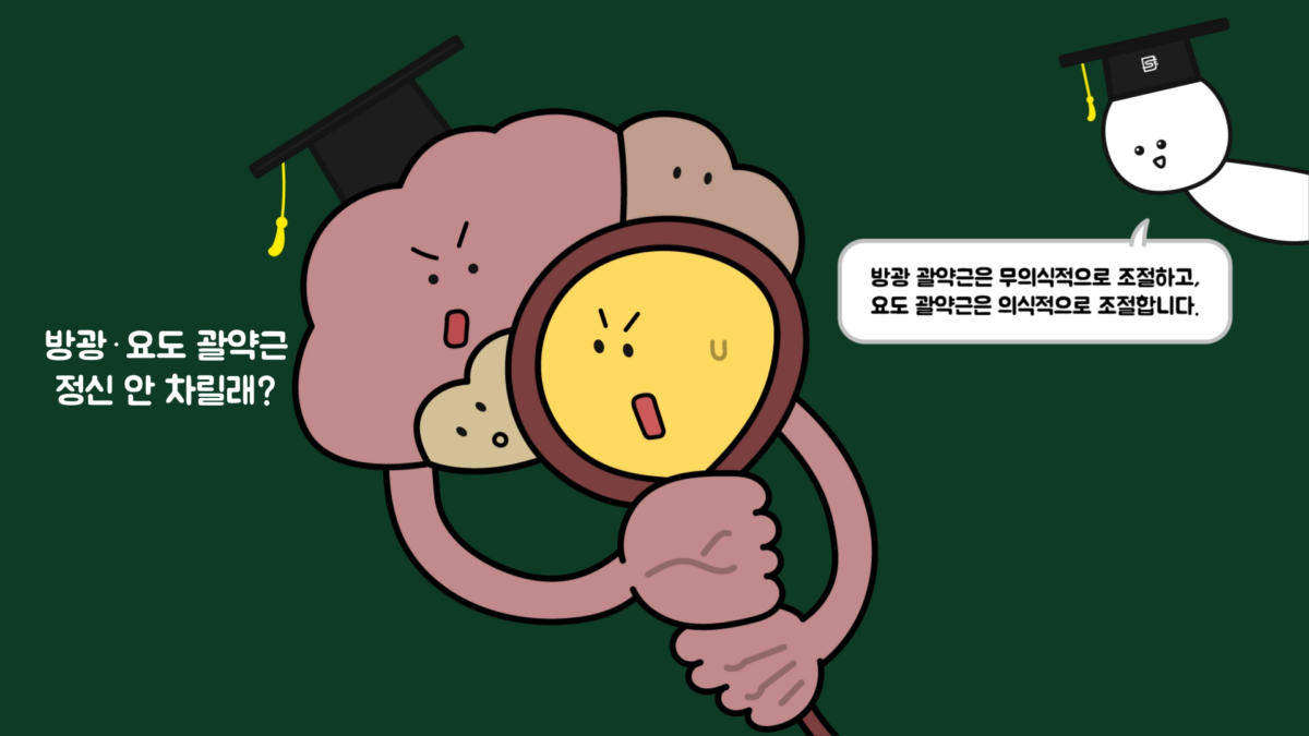 이 과정에서 글루타메이트(Glutamate)와 감마-아미노부티르산(GABA) 등의 여러 신경전달물질이 상호작용을 통해 관여하면서 배뇨 신호를 조절합니다. 여기서 뇌도 방광 팽창을 감지하는데, 뇌 중에서 특히 전두엽이 방광·요도 괄약근들을 조절하여 오줌을 아무 곳에서나 배출하지 않도록 충동을 조절해줍니다.