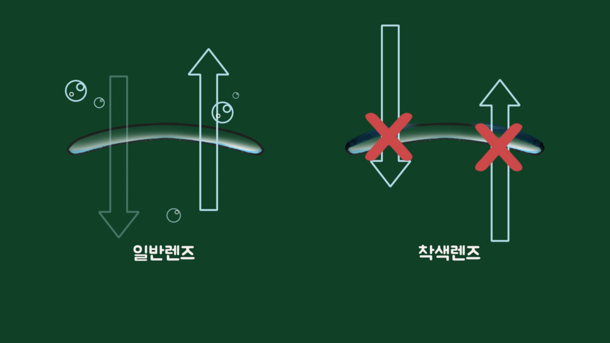 또 산소 투과율이 다른 렌즈보다 상대적으로 안 좋은 편이라 장시간 착용 시 눈에 산소 공급이 원활하지 않게 됩니다. 이로 인해 각막이 부풀거나 변형되어 난시를 유발할 수 있고, 산소를 얻기 위해 혈관이 새롭게 생길 수도 있습니다.