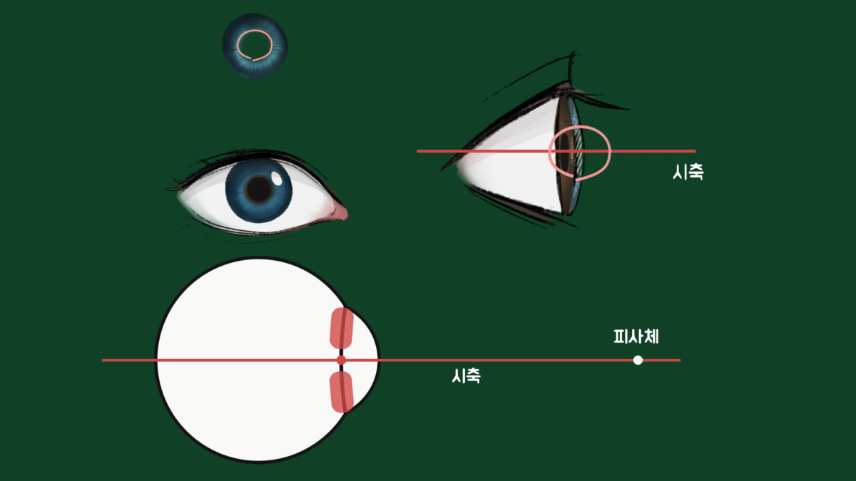 홍채는 인종마다 색소의 차이 때문에 겉으로 보이는 색의 차이가 있긴 해도 결국 동공을 통해서 시축 부분으로 보고, 나머지는 빛을 차단하는 조리개 역할을 합니다.
