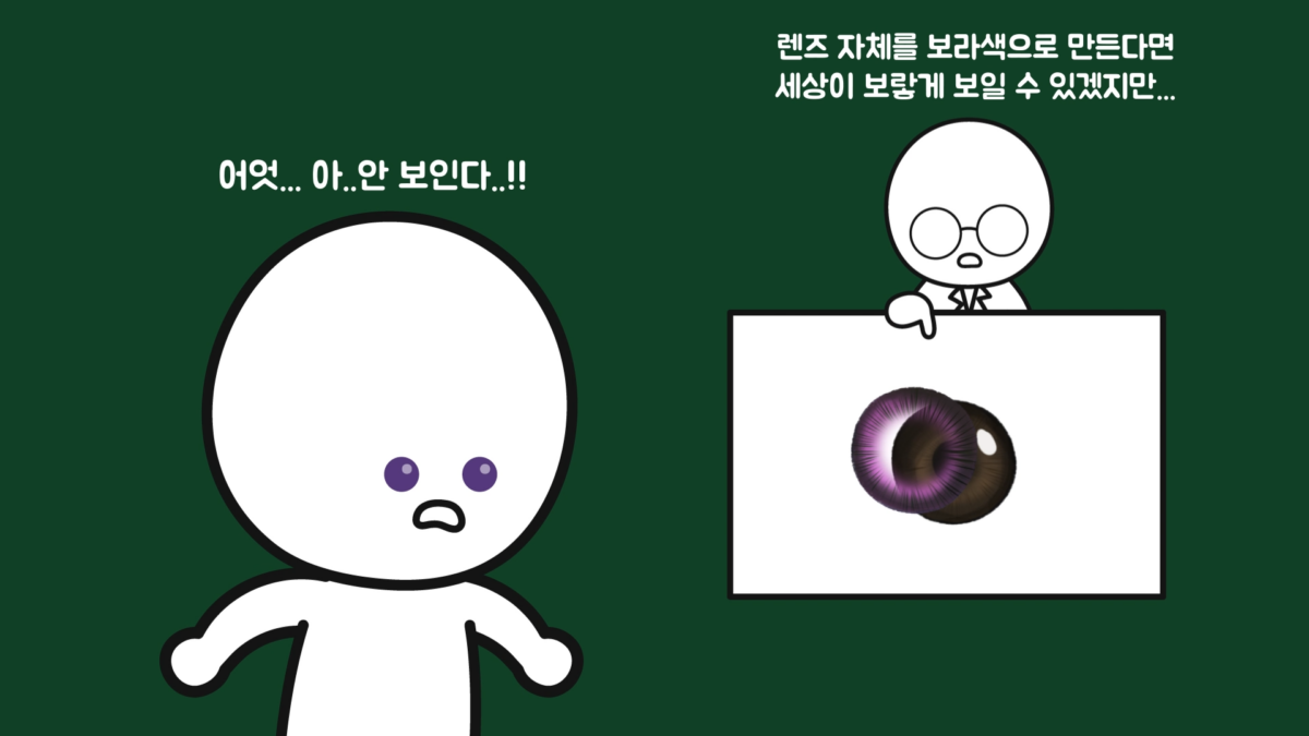그렇다면 착색된 부분이 동공 부분을 가리면 어떻게 보일까요? 선글라스를 낀 것처럼 세상이 그 색상으로 보일까요?