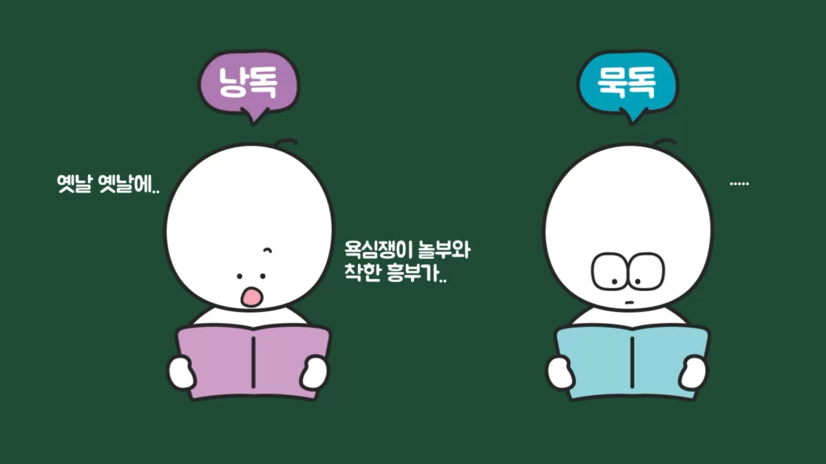 소리를 입 밖으로 내어 읽는 방식을 낭독이라고 하고, 눈으로 조용히 읽는 방식을 묵독이라고 합니다. 상황에 따라 낭독과 묵독을 할 수 있는데, 현대인들은 일반적으로 다른 사람과 함께 있는 공간에서는 묵독이 기본 교양이라고 생각합니다.