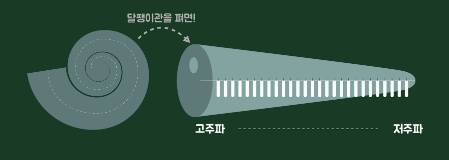 위치이론부터 알아보면 앞서 설명했던 소리의 전달 과정을 다시 봐야 합니다. 물체의 진동으로 발생한 소리가 고막을 거쳐 대뇌로 가는 과정에서 달팽이관을 거친다고 했던 내용을 기억하시나요?