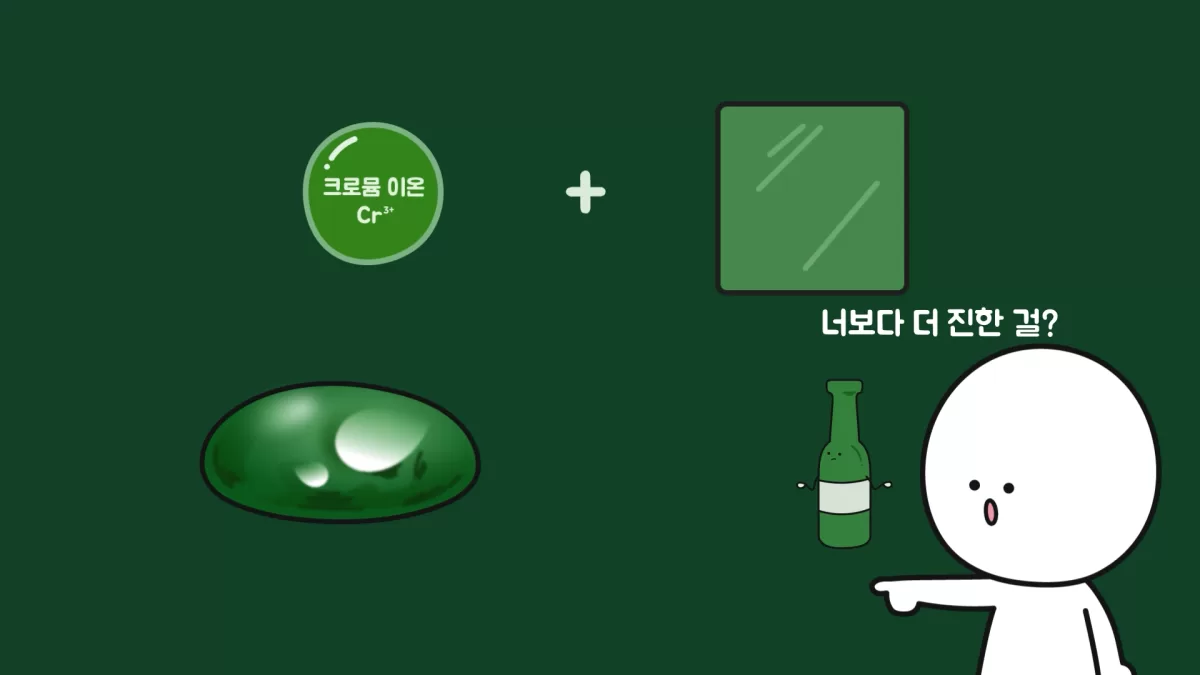 만약 더 짙은 초록빛을 만들고 싶다면 2가 철 이온(Fe²⁺)을 더 넣어주면 되고, 광택이 나는 진한 녹색을 원한다면 3가 크로뮴 이온(Cr³⁺)을 넣어주는 방식으로 색을 조절할 수 있습니다.