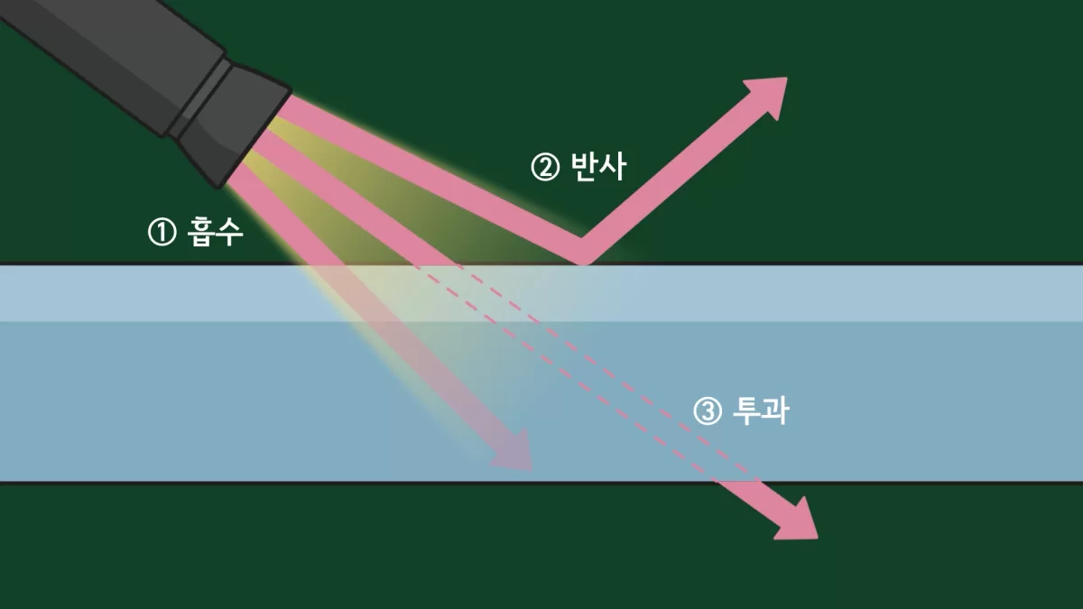 비정질 고체 구조는 유리에 중요한 특성을 부여합니다. 빛이 물체에 닿으면 빛은 물체에 흡수되거나 부딪혀 반사되거나 뚫고 투과하는 세 가지의 반응을 보입니다.