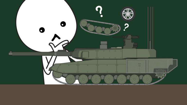 전차를 보면 여러 개의 바퀴가 달려있고, 바퀴들은 강판에 둘러싸여 에스컬레이터처럼 구동합니다. 이와 같은 추진방식을 무한궤도라고 하는데, 전차뿐만 아니라 불도저나 굴삭기, 트랙터 등에서도 많이 사용합니다. 여기서 주제의 ……..